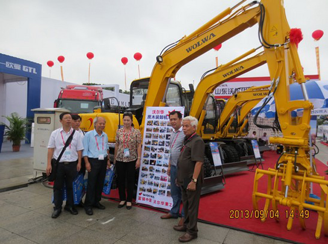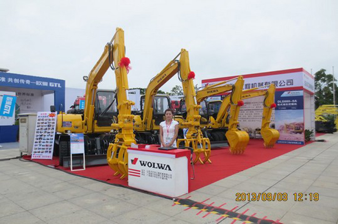 As the leading brand of Chinese wheel excavator, volwa group to apply to the high quality booth, booth structures, distinctive, with its star product DLS875-9 a, DLS880-9 a wheel type hydraulic excavator and DLS875-9 a, DLS880-9 a wheeled sugarcane wood loader at the 10th China - asean expo showed again.