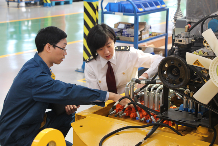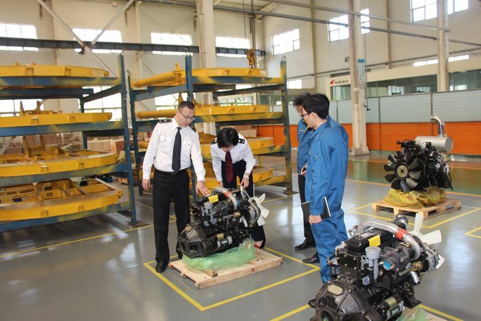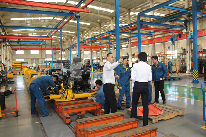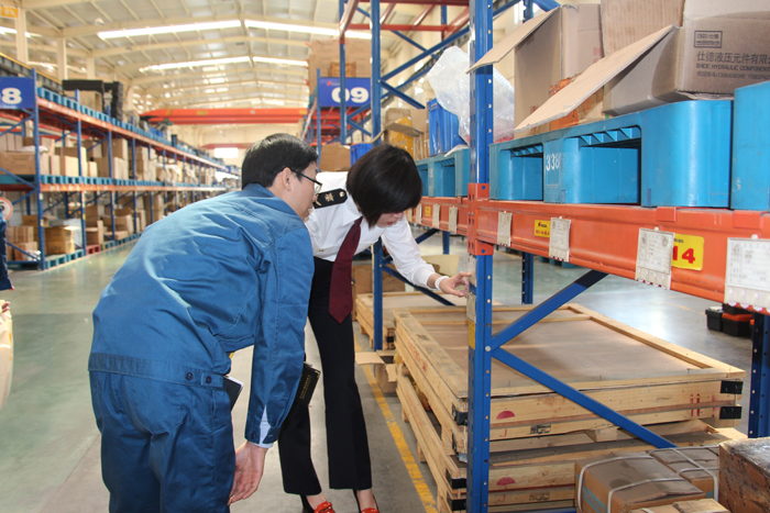 on the third floor conference room , section chief Mr. Liu line with other people in charge of the group purchasing, technology, production, quality inspection department carried on the discussion They made a full understand of the development history , organizational structure , future develop plan and manufacturing process of the products of Wolwa Group. Then, accompanied by president Cai and Gao, they made an on-site inspection and guidance in Wolwa accessory manufacturing shop, pipe industry manufacturing shop, Dorson hydraulic parts manufacturing shop and Wolwa Construction machinery assembly workshop. And they watched the production site and operation situation of hydraulic excavator and hydraulic sugarcane loader, speaking highly of the products performance. During the inspection, Mr. Liu also carefully checked the implementation of business management system , the control of product quality and safety and the file record of raw materials and imported parts.