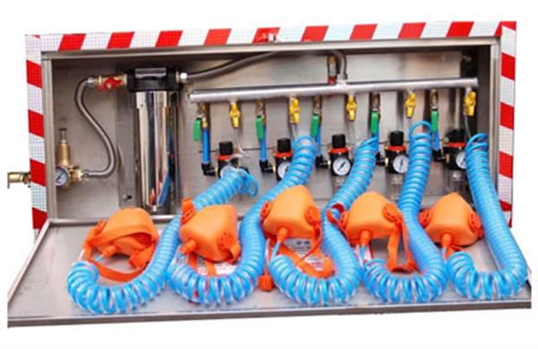 When the product installation, the first relief valve pressure to a minimum, and play with the equipment with Allen wrench, unscrew the top of the pressure reducing valve nut, counterclockwise to attune to the end, pressure gauge shows zero. Then pick up underground water pipes. Slowly clockwise adjust the pressure reducing valve, pressure gauge pointer to (0.5 Mpa), stop the adjustment, and screw adjustment holes on the nut, to go thru each water supply valve, to see whether each service has enough to clean the water out. If water supply is normal, please shut the door is water supply device, insert the door latch. Such as in the case of an emergency, mine personnel need to rescue them when drinking water, the door is opened, and then open the outlet valve, can directly drink clean water, to wait for rescue in time. Note: not against pull!