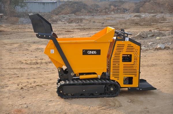 Mini dumper is mainly composed of hopper and walking chassis, with the help of the gravity of the bucket material or cylinder.